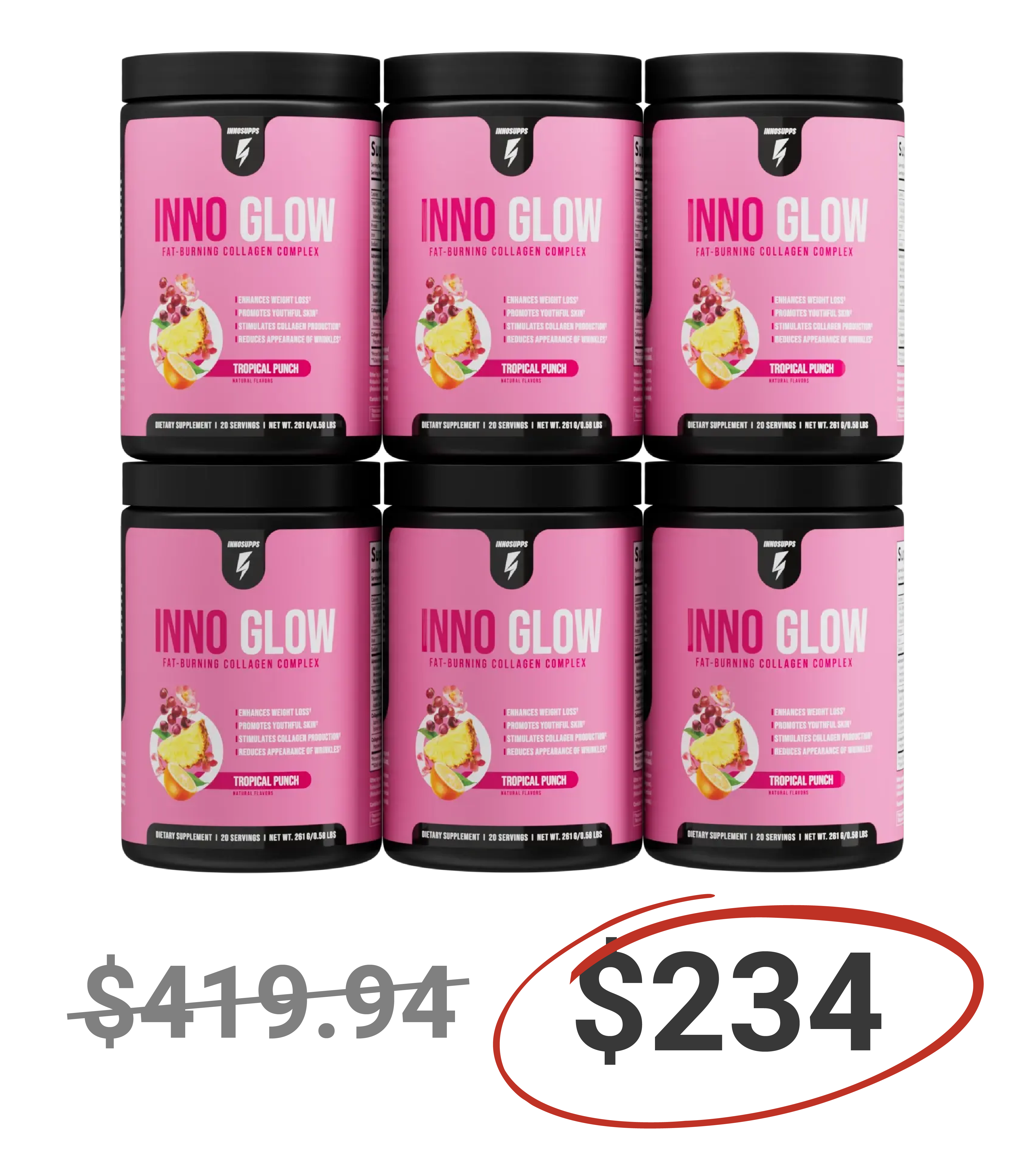 Anyone (over the age of 18) can use Inno Glow, and it’s especially beneficial for men and women over 30 to help supplement the decline in muscle mass and natural collagen production and quality.