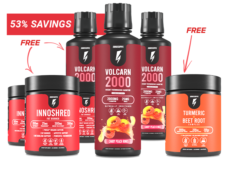 3 Bottles of Volcarn 2000, 3 Bottles of Inno Shred + FREE Turmeric Special Offer -