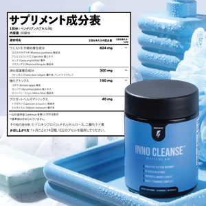 Inno Cleanse™の服用方法を教えてください。1日2カプセルを目安に、就寝前にお召し上がりください。1回あたり14日間を目安に、月に1サイクル行うのがおすすめです。食事の有無はお好みで構いませんが、ご自身の体調に合わせてお選びください。