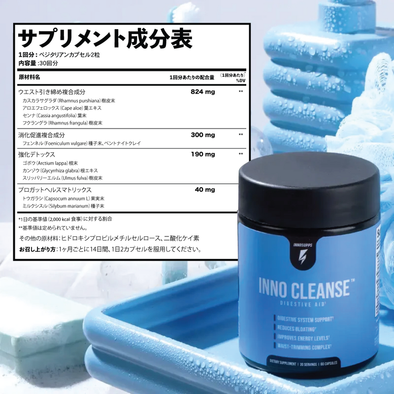 Inno Cleanseで下痢になりますか?Inno Cleanse™は、刺激の強い成分を使用しておらず、一般的に下痢を引き起こすことはありません。人によっては、一時的に排便の回数や量が増える場合がありますが、これは腸内にたまった不要物の排出によるものと考えられます。Inno Cleanse™は消化を改善しますか?もしそうなら、飲んでいる間だけですか?Inno Cleanse™は、消化のリズムをしっかり整える設計です。ご使用中はお通じの回数が増えやすく、その後もしばらく(目安として約2週間)規則的なリズムを感じる方が多くいます。腸内にたまりがちな不要物をスムーズに押し出す後押しをします。 -