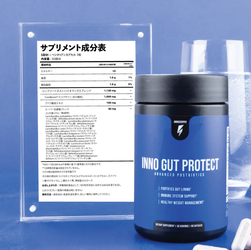 なぜイノ・ガット・プロテクトも飲む必要があるのですか?Inno Gut Protectはポストバイオティクスで構成され、腸の粘膜バリア(腸壁)の強化と修復をサポートします。腸壁が整うことで、プレバイオティクスやプロバイオティクスの働きをキープしやすくなり、より良い腸内環境を目指せます。研究では、ポストバイオティクスが免疫サポートや炎症バランス、健康的な体型維持にも関与する可能性が示唆されています。イノ・ガット・リストアとイノ・ガット・プロテクトの違いは何ですか?Inno Gut Restoreはプレバイオティクスとプロバイオティクスを、Inno Gut Protectはポストバイオティクスを配合しています。どれも腸内で異なる働きを持つため、3つを組み合わせて摂ることで、より理想的な腸内環境づくりをサポートできます。