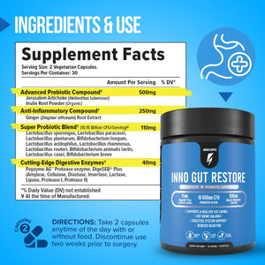 Inno Gut Restore (イノ・ガット・リストア)で、無理なく取り組める新しい体重管理を!この先進的なプロバイオティクス菌株は、わずか6ヶ月で体重コントロールが期待できるとされています。このスーパープレバイオティクス+プロバイオティクスのブレンドが、消化器系と腸内の善玉菌のバランスを整え、代謝をサポートします。食欲の乱れを和らげ、無理なく体重管理に取り組めるように後押しします。