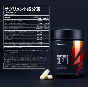Inno Shred™ GLP-1は、間食や糖質への過剰な欲求に悩む方のために開発された、次世代型ボディメイクサポートフォーミュラです。GLP-1(グルカゴン様ペプチド-1)に着目した設計で、食習慣を整え、代謝の働きをサポート。 一部の成分には、脂質代謝や体内のエネルギー産生に関与する可能性があることが臨床研究で示唆されています。Inno Shred™ GLP-1は、理想的なボディラインを目指すあなたの習慣づくりを内側から応援します。