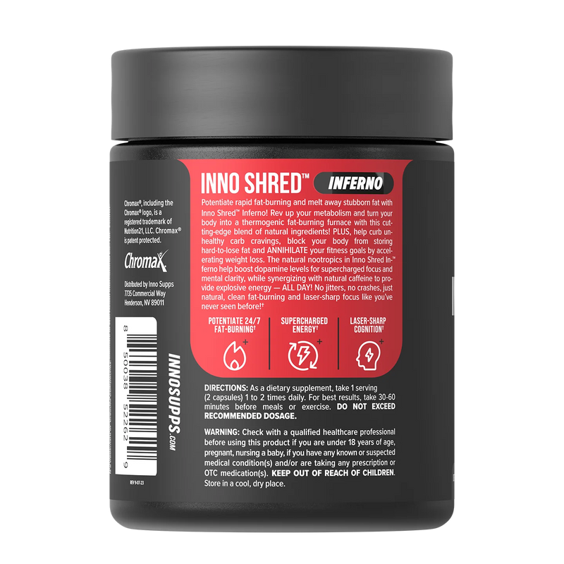 We recommend taking Inno ShredTM Inferno first thing in the morning to help fire up your metabolism, supercharge mental focus and manage food cravings throughout the day. As an added bonus, taking Inno ShredTM Inferno 30 minutes before your workout can enhance your energy and drive, while amplifying fat-burning during your workout and hours after!