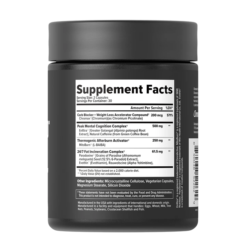 Unleash the relentless power of MitoBurn® and Paradoxine® to set your metabolism ablaze 24/7. MitoBurn® cranks up the post-workout afterburn effect, increasing fat loss by up to 40%, while Paradoxine® ignites thermogenesis to incinerate stubborn fat. -