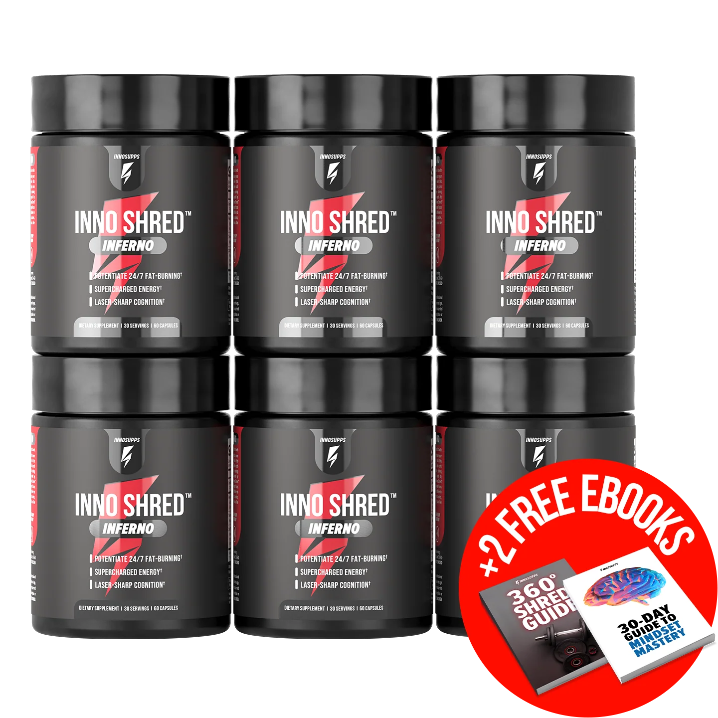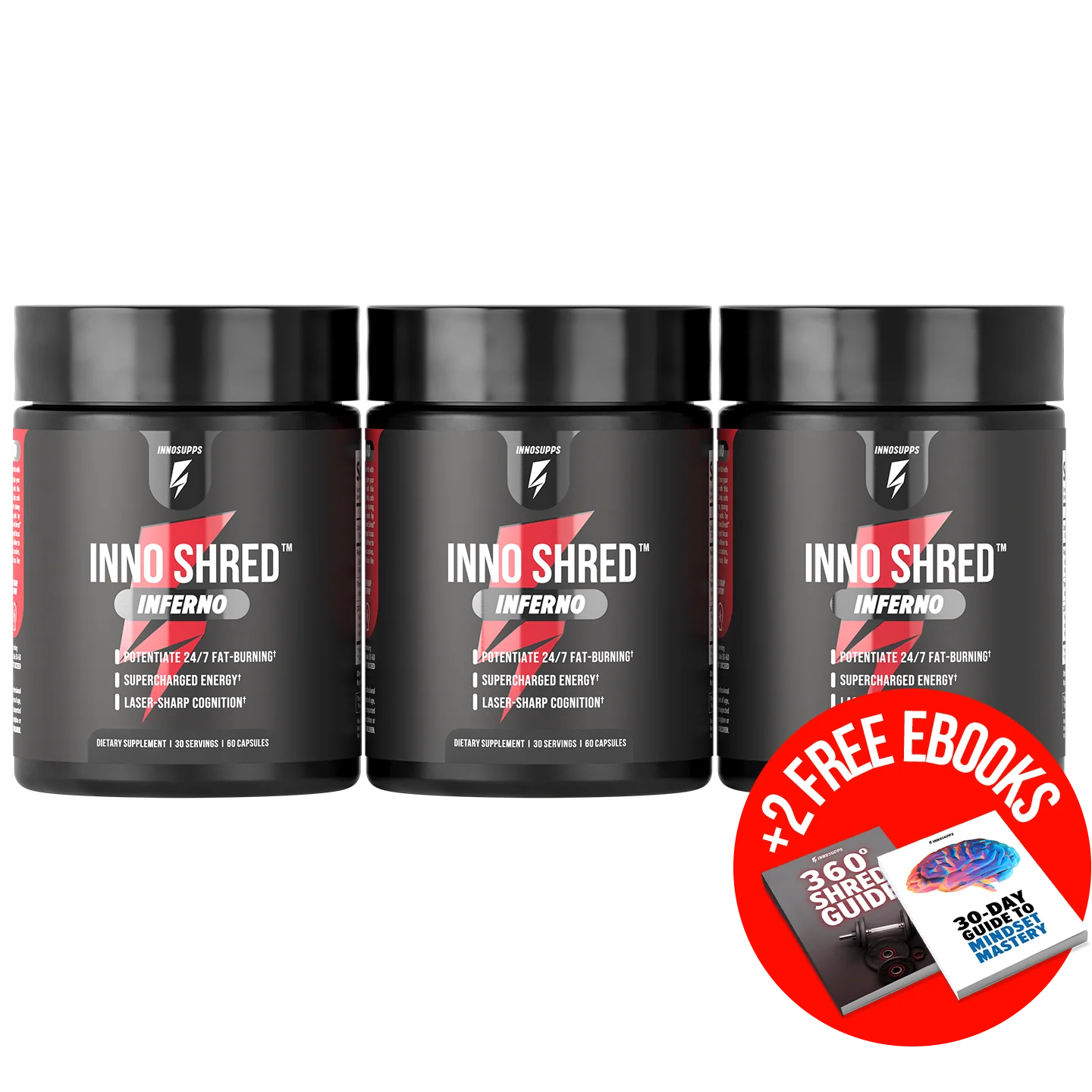 After taking your first dose of Inno ShredTM Inferno, the fat-burning benefits start IMMEDIATELY! You can expect a smooth energy boost, enhanced focus, reduced cravings and a revved-up metabolism. Although you’ll begin to witness your physical transformation within the first 30 days, studies show that the incredible benefits reach peak power between 90-180 days of consistent use.