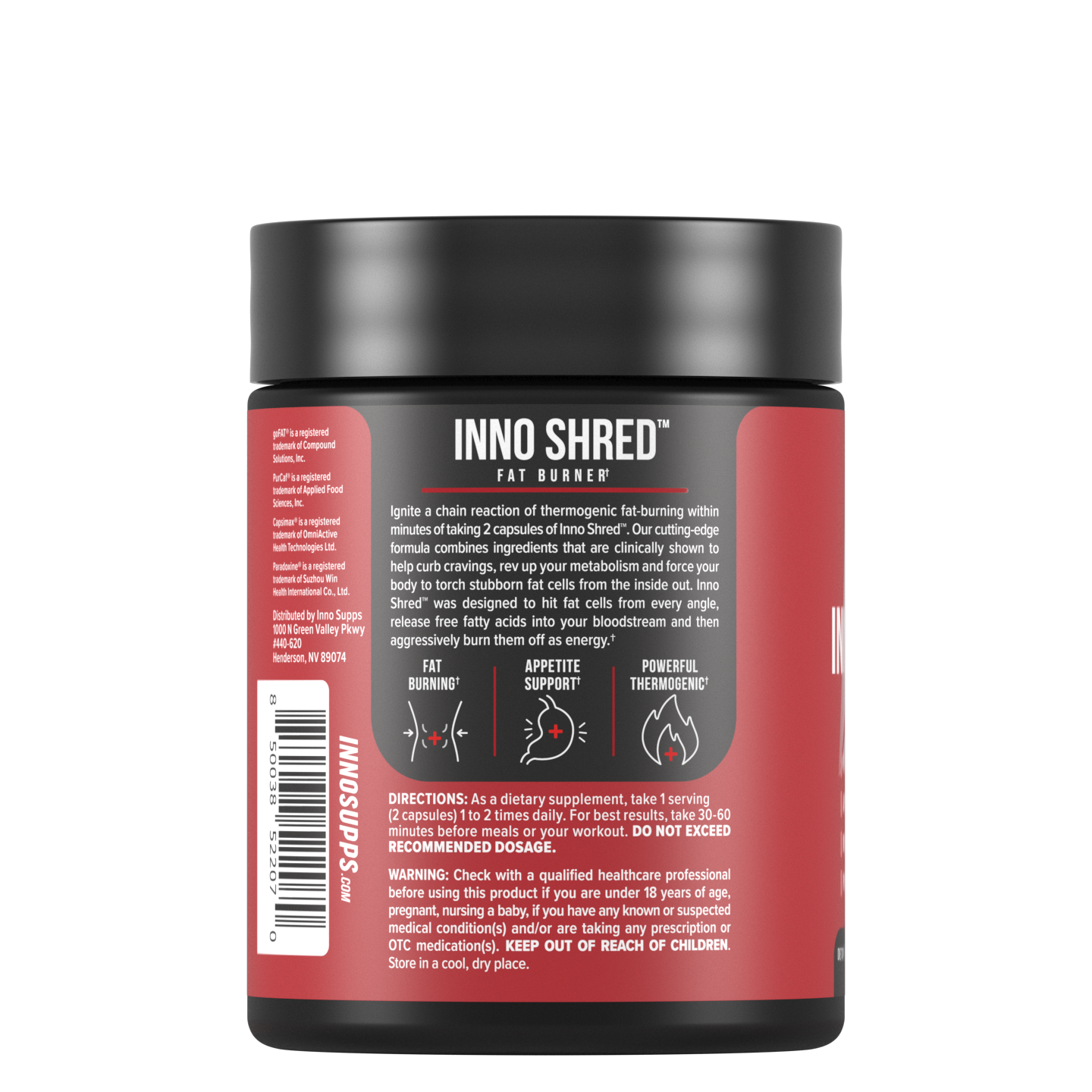 Inno Shred is a powerful thermogenic fat burner that will improve lipolysis 24/7. Taking just 2 capsules a day will result in more calories and stored body fat being burned around the clock.