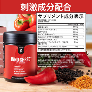 多くの脂肪燃焼系サプリは、刺激を強く感じさせることで“効いている気がする”体感を重視して作られています そのため一部では刺激成分を過剰に配合する傾向もありますが、Inno Shredは違います。製造コストがかかっても本当に意味のある脂肪燃焼成分だけを厳選し、体に無理のない範囲でしっかりと結果を出すことを目指して設計されています。強い刺激に頼らず、脂肪燃焼と代謝促進に本気で取り組む方にこそ選ばれている処方です。Inno Shredがどれほど本質的で信頼できる成分配合かは、ストアページに記載されたすべての情報をご覧いただければきっとご納得いただけるはずです。